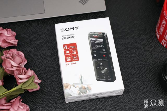 其实录音笔在视频Vlog普及的今天已经有越来越多的用途,无论是职业所需还是业余玩家,对于真实高保真的音源录制诉求越来越高,索尼上一代产品ICD-UX560F/UX565F录音笔主打的就是轻薄便携与功能全面,操作简单和出色拾音收获了一大批粉丝和一票音频烧友。今年作为索尼录音笔系列产品中定位平衡的UX系列,又推出了升级款的ICD-UX570F/UX575F(以下简称UX570F和UX575F),除了延续前代轻薄便携等定位外,在外观设计、背景音降噪提升录音质量、UI等方面也进行了升级,最近刚好有机会拿到了这款产品试玩,接下来就给大家带来关于低频与中频的音质感受,啊不对,是这款录音笔外观与功能体验的开箱评测! 【开箱篇】UX570F的包装盒为白色,也是延续了UX560F产品的外包装色调与风格。不过相比于UX560F的简洁正面,UX570F录音笔不仅有索尼LOGO,产品体力图和产品名称“立体声数码录音棒,ICD-UX570F”字样,新增了红色块的产品特点更加直接:包括“4GB存储159H录音,可插MicroSD卡,产品支持USB直插电脑,USB直充和Stereo宽广立体声录音”,而左下角也新增了场景图,突出个“会议/演讲用”,后面空白处在烧友眼中肯定默认还有个隐藏的“HIFI”字样(偷笑),找了半天“小金标”,最后没找到,有点sad(偷笑)。