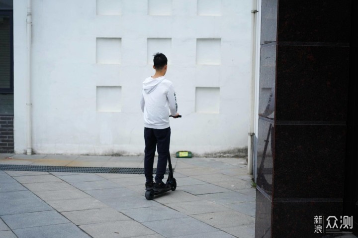 5、骑行 关闭电机后,体验上面跟普通滑板车区别不是很大,重点说说电动滑板车模式下的使用情况,初始起动需要人为滑动后,emicro one的电机才会开始运转,伴随着电机的介入,能够明显感受到滑板车一下子开始加速,初始速度相比普通滑板车会有明显的提升。