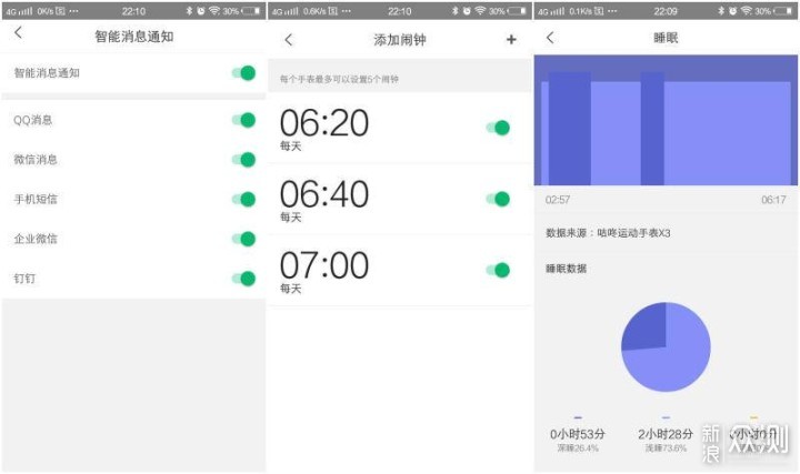 手表还有一些实用的小功能,依次有天气、锁屏、指南针、秒表、计时器和消息提醒,以及睡眠监测,只是不能在手表上显示,需要同步手机上查看,支持深度睡眠、浅睡眠的分类统计。 三、体验总结咕咚运动手表X3外观简约轻巧,佩戴比较舒适,高清彩色触屏,不仅有快速精确的GPS定位,运动心率监测,还有多项运动模式提供选择,运动后能全面的查看各项数据。总体性能还是不错的,性价比也高,适合初阶或中阶跑者使用。 有待改善:操作逻辑不够简单;不能设置背光和锁屏时长;心率监测不能24小时开启。