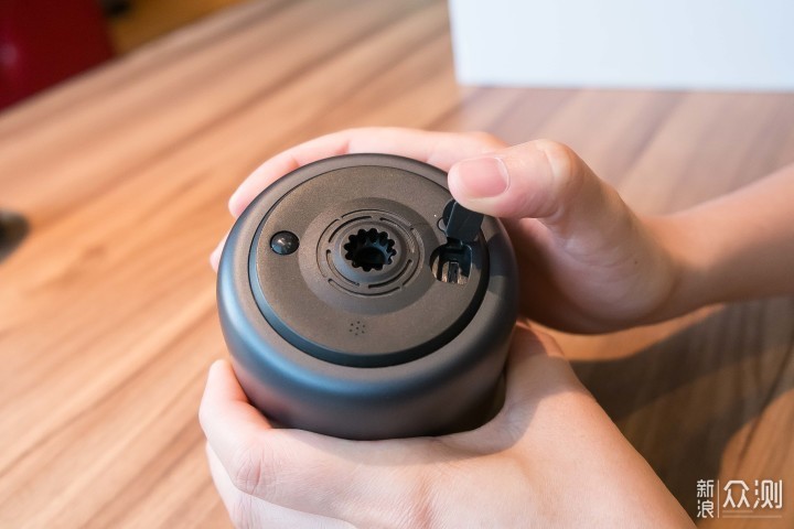 ▲一目净水器底部有一个附带橡胶塞的充电接口,只需2个小时即能充满,续航时间可达1个月。另外凸起来的是开关机键,长按10秒就可以开机。