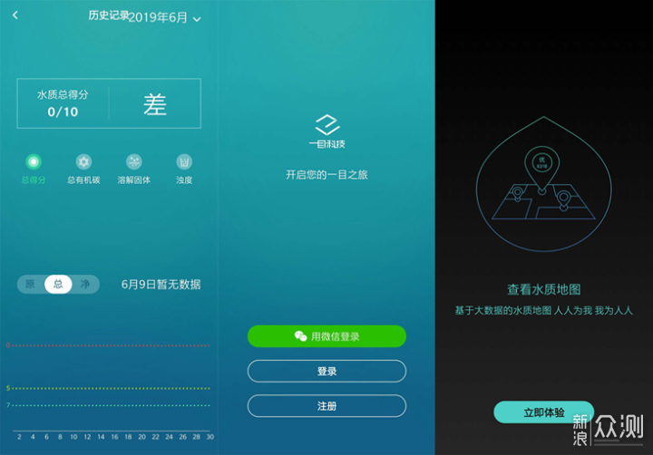 ▲作为一款智能监测龙头,一目净水器自然可以与手机进行互联。安装一目App后,就可以与一目净水器进行连接激活设备,然后就能够在手机上看到每天监测的水质信息以及细分的各个指标了。