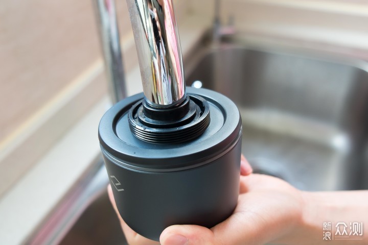 ▲龙头净水器相比传统储水式净化器最大的优势就是体积小巧,像一目净水器三维尺寸为高105mm,直径80mm,直观来说就跟一瓶350毫升的可以差不多大,350g重量对于便携性也有一定的帮助。