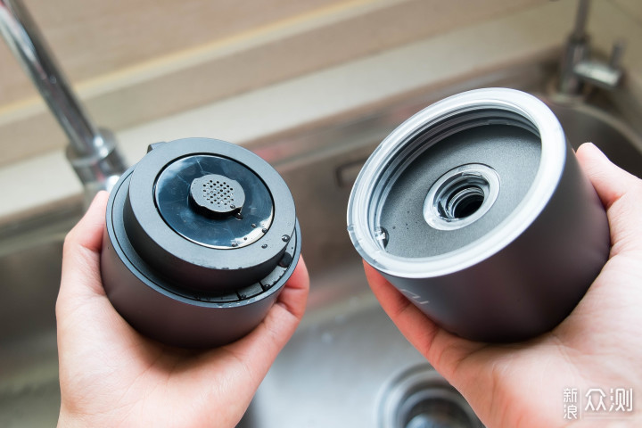 ▲值得注意的是,这款一目净水器是可以旋转扭开,一分为两个可以独立使用的部分。上部分为水质过滤模块,内置有一目复合滤芯,从上往下分别是PET过滤棉、活性炭颗粒、复合纤维、PET过滤棉。其中复合纤维为日本进口复合纤维,能更高效去除微米级的污染物;活性炭颗粒则采用了混合高目颗粒活性炭,可有效去除余氯、异色异味及有机污染物。