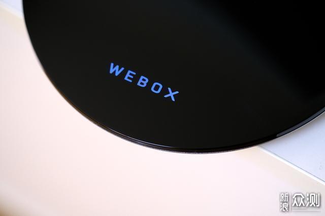每当开机之后,黑色的面板就会有“WEBOX”LOGO的白色灯亮起,很是好看。这个指示灯亮度不高,看上去比较柔和,但是在黑色面板的衬托下,还是比较醒目的。