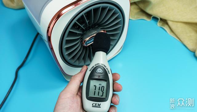 通过按压摩飞冷暖风机顶部的“+”“-”键,可以对风速进行调节。那么此时的噪音数值又如何呢? 在中档风速时,贴靠出风口的噪音数值为66dBA。