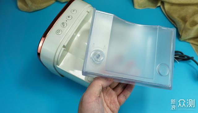 在摩飞冷暖风机的顶部是加湿水箱,轻扣即可拆卸。