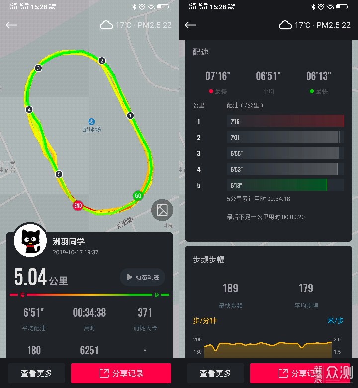 下面这个跑步数据是我在大学操场跑的,数据记录使用的是悦跑圈App。