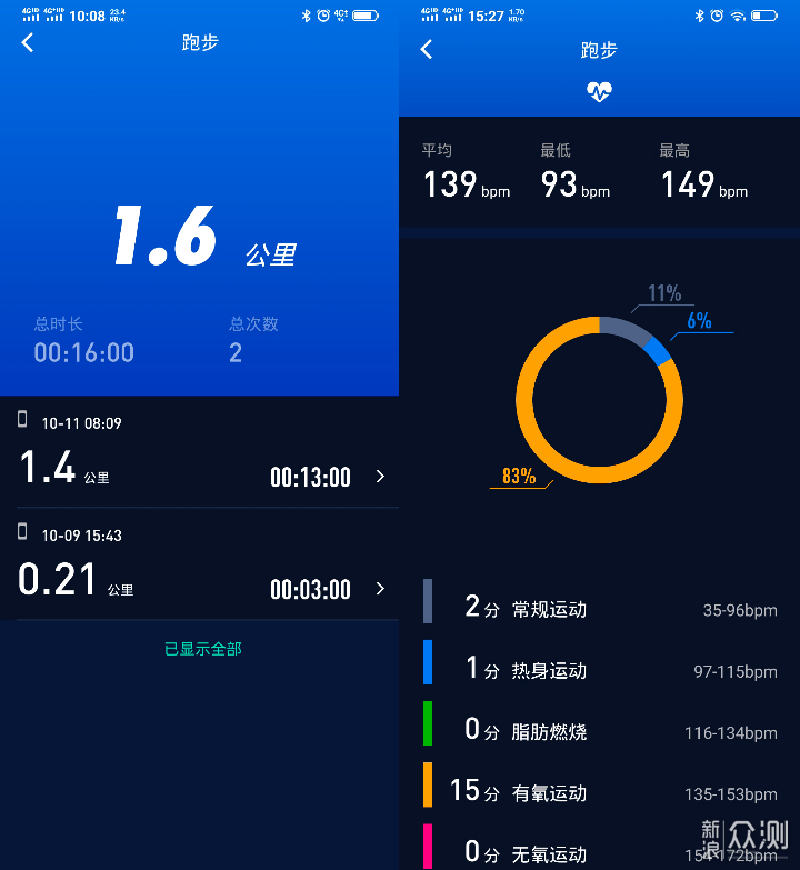 最后就是关于跑步,因为我一直是有坚持跑步,手环的跑步数据记录是比较全面。例如,你跑步的过程是常规运动还是热身运动,还是燃烧脂肪,还是有氧运动,手环回给你及时记录下来,同时也会将你跑步过程的心率做一个全面细致的记录。