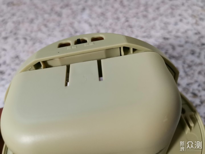 净化器主机的开关按钮也隐藏在主机的内部,不打开外壳是无法开关的,目前这一块的设计有点使用麻烦。开关分:常规和加强2档设计,采用左右拉的方式选择!