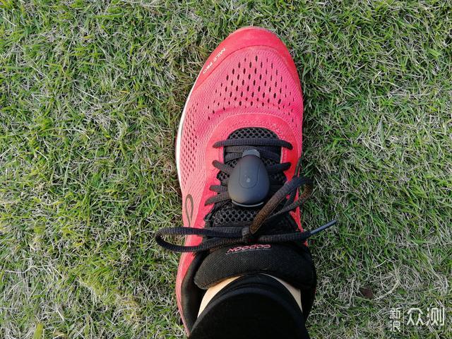 ▲整体上脚效果比较匀称美观,大小适中。不过在定位时需要主要小头超前,大头向后,并安置在左脚鞋上,如此才能更好地采集数据。 (3)指示灯示样