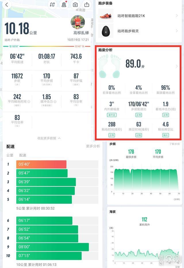 ▲与直接使用咕咚App的区别在于,绑定了跑步精灵的咕咚页面多了上图红框中“跑姿分析”项目,里面包含前后掌着地比例、内外翻幅度等多项数据,App会根据收集到的数据进行评价,用户可以根据评价进行相应的改进,那么,具体是怎么实现的呢?请看下一条。 (4)跑姿分析详情