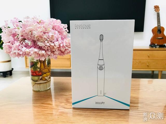 二:开箱这次开箱的是Feelove扉乐F1电动牙刷,包装是白色纸箱,看起来干净简约,左上是产品英文标识Feelove,中间是产品简笔图案。