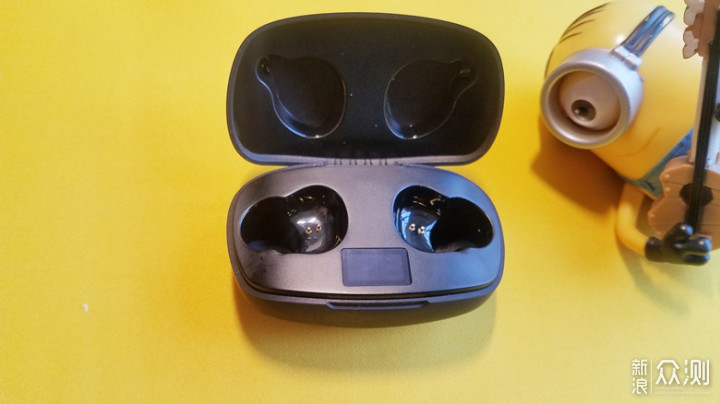 蓝牙耳机的本体被放置于充电仓的上方,配色依然是低调的全黑,乍看之下,并没有特别亮眼之处,其中说明书和配件位于隔层的下方。
