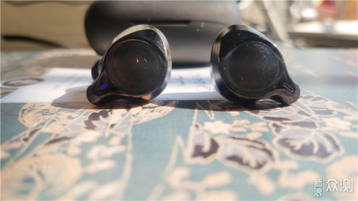不同于官方给出的效果图,实际到手的耳机正面图案较浅,只有在细看之下才能被发现,图案部分采用的是哑光黑,纹路形似指纹。