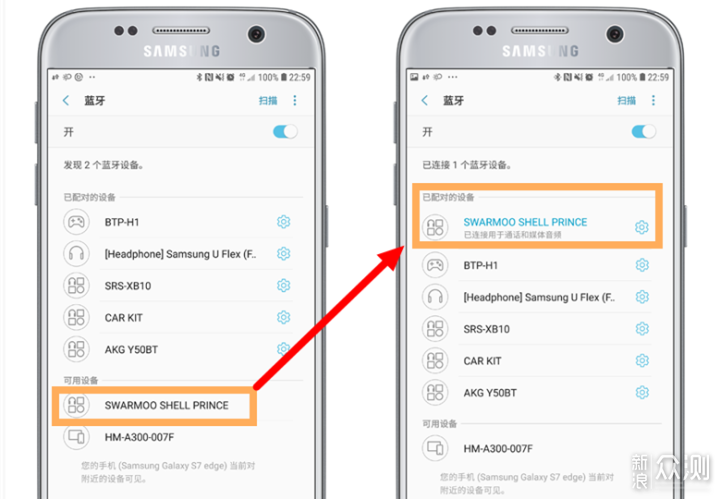 至于连接就比较简单了,和常规操作一样,只需打开手机蓝牙进行扫面,识别非常快,“SWARMOO…”名称的设备就是小哞无线蓝牙耳机,点击即可完成连接,成功后在会显示在“已配对的设备”栏中。