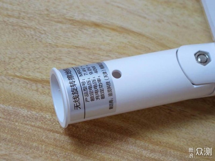 在擦地机的把手连接处还粘贴有产品标签,可以看到这款产品额定功率达到40W,动力强劲,由追觅科技有限公司生产,质量有保证。