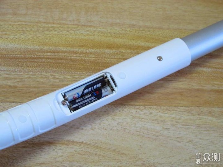 同时,在延长杆的手柄处也有电池仓设计,加入随机配送的两颗7号电池,既可以遥控使用。