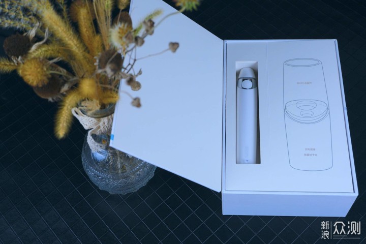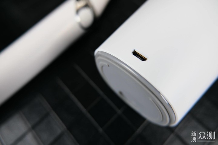 杯体上除了放置牙刷主体的插槽外,还有一个小孔,这个就是放置牙刷插头的地方。扉乐独创的在杯体上设计了烘干和紫外线杀菌的功能,只需要将刷头插入杯体就可以自动开启杀菌和烘干功能。 而方便易用的无线充电,让牙刷主体放入杯体中后便可以开启自动充电。