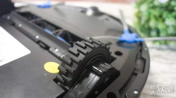 底部共有三个轮子,最前方的万向轮可以360°旋转,把控着前进的方向,配合左右两侧的齿状驱动轮,驱动轮。