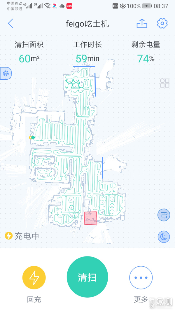 通过手机App我们可以看到岚豹对于清扫区域,首先通过沿边传感器巡着边界清扫,再进行蛇形清扫或井字清扫,对清扫区域实行全区域饱和立体式轰炸。