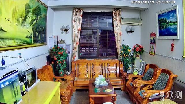 其次是室内关灯仅开鱼缸灯光,营造微光环境。这时候画面还是彩色的,虽然噪点多了起来,但室内的环境基本上还是能看清楚,换成以前我用过的智能摄像头,即使有同样的微光,都会自动切换红外夜视。