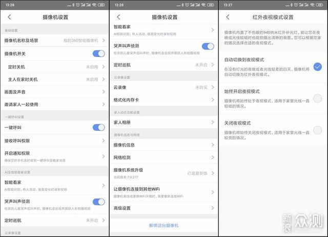 在360摄像机App设置的界面里,有更加细分的功能相关设置,我就不逐一累述了。在这里我要跟大家着重谈谈的是巡视功能。360智能摄像机云台AI版拥有垂直水平双轴双马达,水平视角可以达到360°,垂直视角可以达到152°,而巡视功能开启之后,会自动左转右转上转下转一遍,做到对环境全方位的监控,用户也可以设置定时巡航。