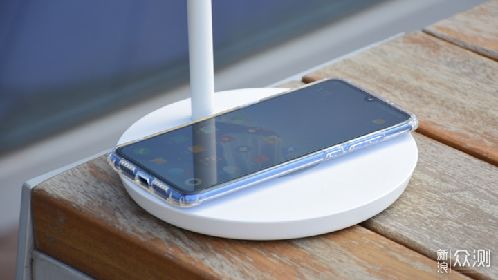 Pro版的星辰台灯底座中间有一块灰色的橡胶区域内置无线充电板,提供最大功率为14W的无线供充电功能,并搭配有优质的散热铝片。目前支持为苹果、三星、小米、华为等众多支持Qi无线充电协议的智能手机充电,虽然功率并不是很高,但兼容性可以说是非常强了。