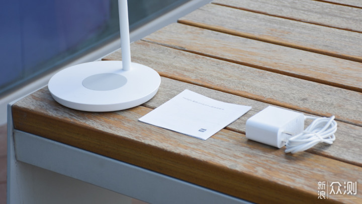 底座背部预留有DC电源接口,搭配随机附赠的电源适配器为台灯供电。适配器的个头并不算小,但好在采用了纵向插头的设计,避免挤占插线板空间,适配器的最大输出功率表为12V-1.5A。