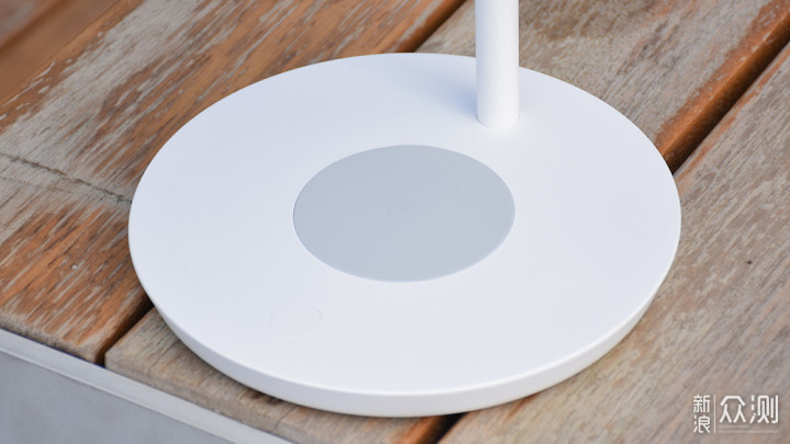 灯臂的长度大约为20公分左右,与机身底座直接固定。底座部分采用圆形设计,与灯罩以及整个台灯的外观设计相呼应,底座虽为ABS材质外壳,但内部结构却相当扎实,台灯放置在桌面上非常稳固。