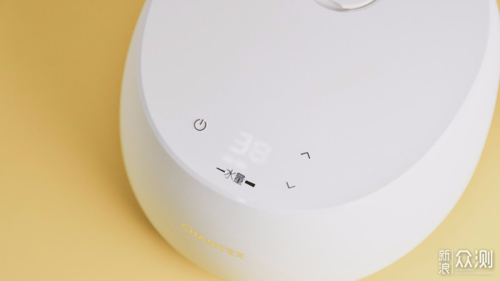 所以我们先来看看这个水暖加热的机器主体,我们一眼可以看到机器上方有开关按键、温度上下调节的按键和水量的显示。后方则有一个可开合的区域,标注有注水口。水暖机的体积中规中矩,会占据一定的床头空间!