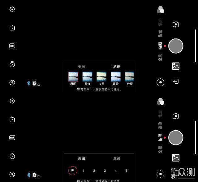 在拍摄照片或者视频的时候,同样支持滤镜和美颜功能。与大多数的稳定器一样,在4K模式下不可以使用滤镜和美颜。