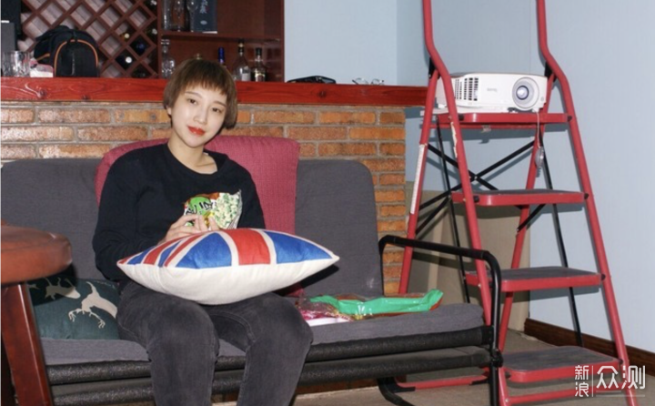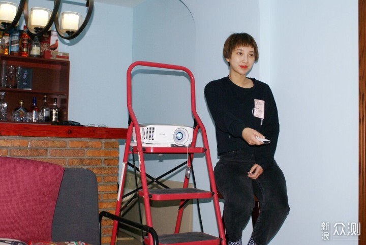 这款明基i707投影仪,体积小巧,可以随处安放,完全没有空间的局限性,可以根据自家的放映条件,放置在任何地方。比如我就临时找来个梯子,把投影仪放在了梯子上,调整好投影画面对焦后,就可以看电影了~当然,我还是比较推荐大家买个专业的支架,吊装固定在天棚上,这样稳定度很好,调试过一次后,随时都可以打开投影仪收看节目了,会更加的方便哦~