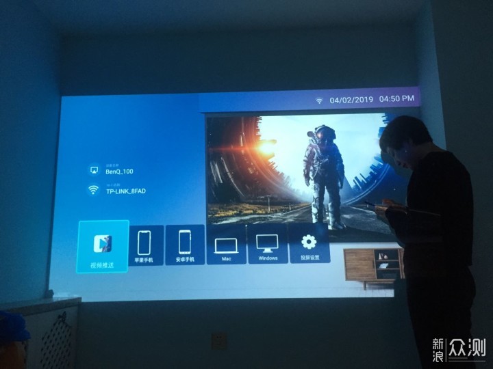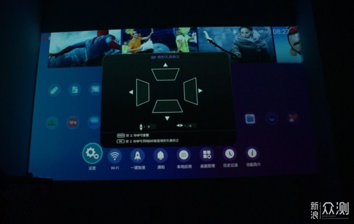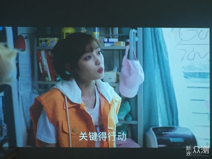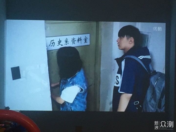 开机调试非常的简单,只要连接电源线、对准梯形矫正,调节好画面对焦,墙面距离投影仪大概3米,这样就完美呈现播放画面了!投影在家里的墙面上,画面质感也挺不错的,所以目前还没有添置幕布的购买意向。