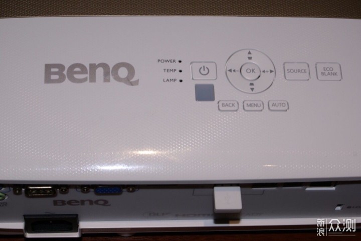 投影仪顶部的实体操作按键,可以调节视频源、调屏等等各种操作,是和遥控器同步的按键操作模式,用上遥控器主机上的实体按键基本上不会碰~