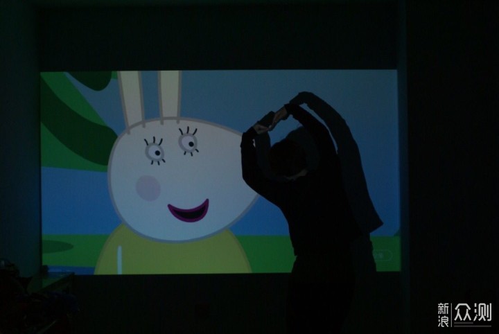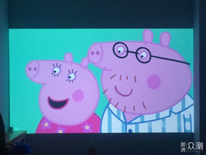 简单操作后,就在芒果TV上收看到了小猪佩奇了,这部动画片绝对是哄小朋友的神器哦~看邻居家的小妹妹看的多仔细,不哭不闹不要抱抱,看上动画片就乖乖儿的了~家有小宝宝的朋友,可以考虑购买一台投影仪哦,漫反射光源,可以很好的保护孩子的视力!