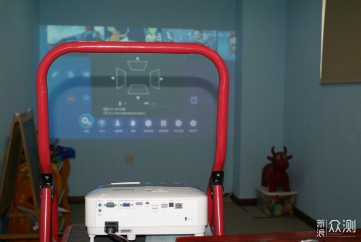 临时试用一下投影仪的效果,所以放置的位置也是临时搭建的,后期我会在天棚上固定好一个投影仪的吊装支架安置它~
