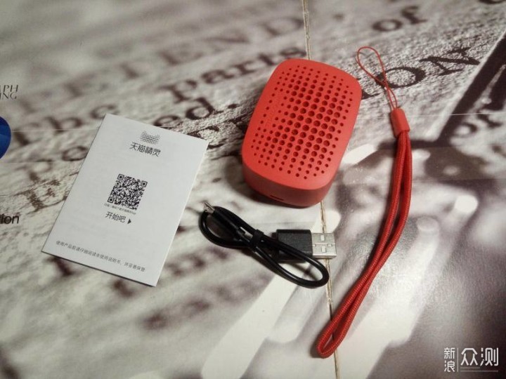包装盒内配件比较简单,只有天猫精灵BOOM、USB充电线和说明书,还配送有一条挂绳。