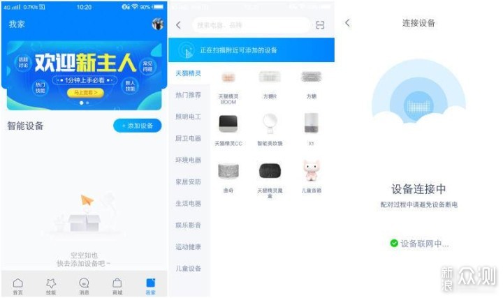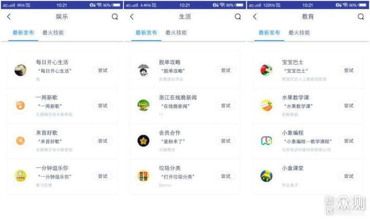 要想获得智能功能,需要下载天猫精灵App来联网,连接方式很简单,根据App中提示即可完成。App上提供有很多好玩有趣的功能,不仅有广播电台、播放新闻、讲笑话、任意点歌,还有小朋友的算数、编程和互动游戏等等。