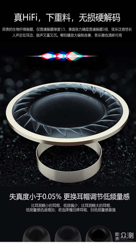 这款TWS耳机采用了生物纤维振膜材质和高通QCC3020芯片,并沿用了蓝牙5.0技术,支持APTX/AAC/SBC编码格式,音质值得期待。通过试听测试,整体感觉在这个价位,作为入门级耳机,音质尚可,其素质胜于同等价位的大多数无线蓝牙耳机。能够做到低频富有弹性而不轰头,但感觉低频量有点少,不够强劲;中频、高频富有一定的层次感,乐器、人声还原较为真实。后来笔者通过更换不同大小型号的耳帽,低频量有所增加。总的来说这款耳机三频较为均衡。