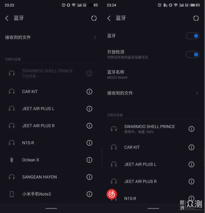 体验1.连接稳定性 初次使用耳机,需先将耳机放入充电仓,保持3分钟,以激活耳机,再将左右两只耳机同时取出,此时指示灯会进入蓝色快闪状态,左右耳机进行配对,待配对完成后,其中一个耳机LED指示灯呈现红蓝交替闪烁,另一只耳机LED指示灯熄灭。然后再与手机配对,打开手机蓝牙,选择“SWARMOO SHELL PRINCE”连接,点击连接成功后,即可正常使用。经笔者实际测试,配对连接速度较快,稳定性好,回连速度也不错,在有墙壁阻隔的情况下,传输距离也能稳定在10米以内。