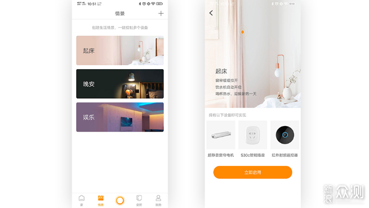 除了单独的电器控制外,“智家365”还提供了情景模式,相信使用过智能产品的用户对这个一定不陌生,我们可以设置一些常用场景,通过App进行一键操作设备,非常方便。