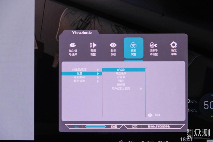 VX2478-4K-HD支持4K和10bit色深,它的色彩设置选项也比其他入门级显示器要丰富一些,色温里有一个单独的sRGB模式,红绿蓝三色的色温也可以单独自定义。