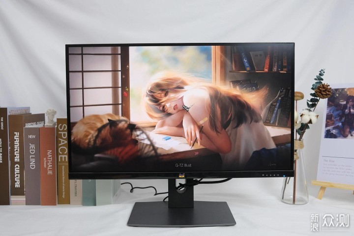 24寸3840x2160分辨率下点距为0.136x0.136mm,相比24寸1080P画面精细了4倍,同样的使用距离画面锐度提升了不少,再也看不到“果粒”了。