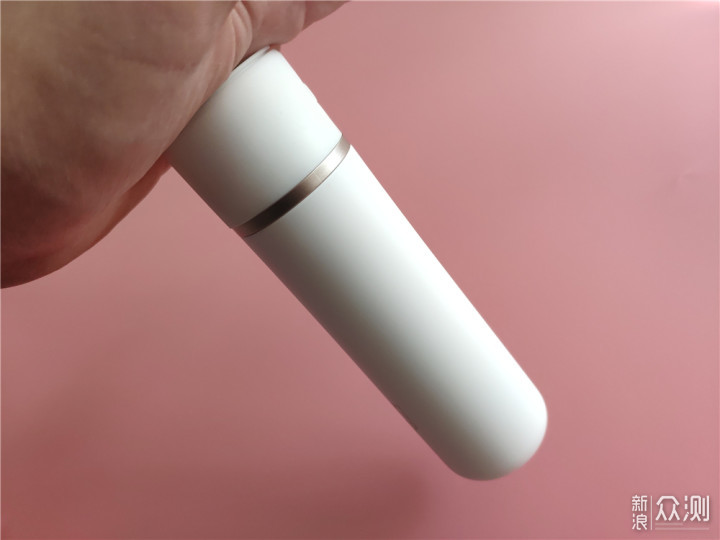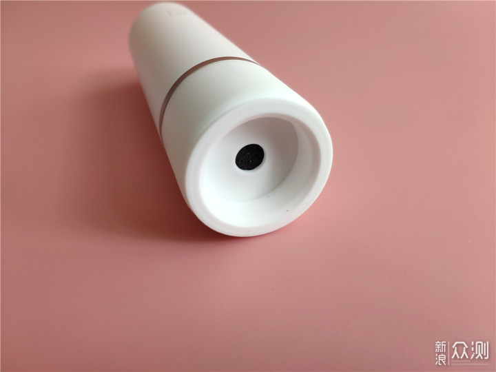 秒秒测倍爱手持真空棒的外观圆柱形,直径40mm,高度160mm,产品从外观两段式设计,上面为机身部分设计有秒秒测LOGO,银环隔开,下半部分是工作部分,抽真空部分在这里实现,其外部是硅胶材质。