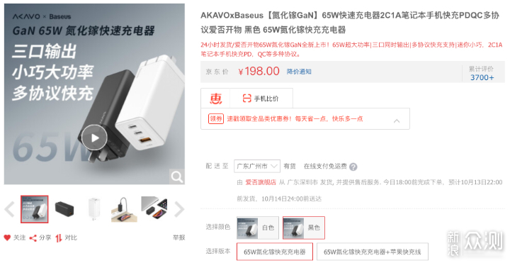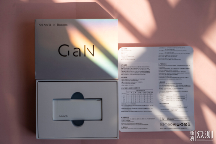 缺点:金属插头不能收纳,容易划伤电脑;只有一个Type-C口,有些不方便;边缘棱角锋利,优点滑手。 直到有一天我遇到了它——AKAVOxBaseus【氮化镓GaN】65W快速充电器。