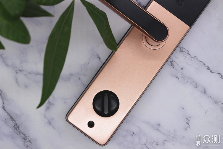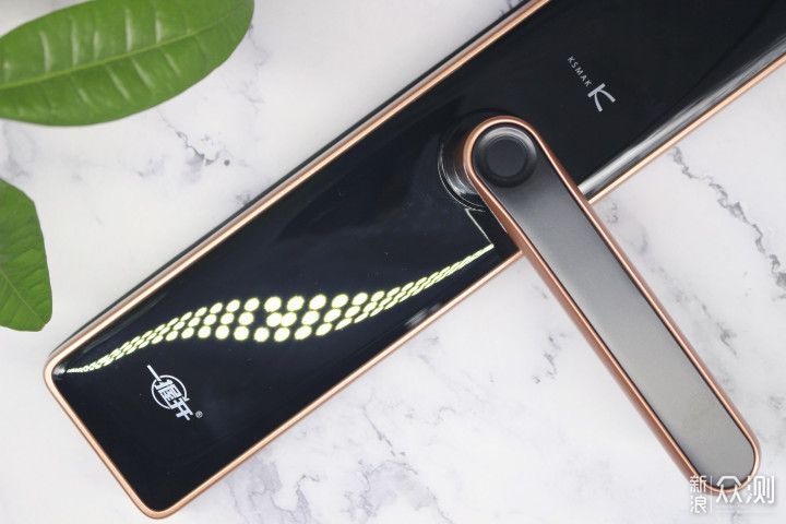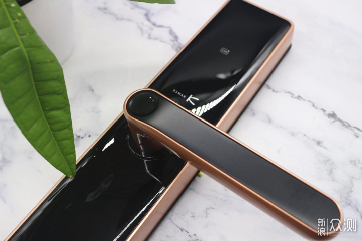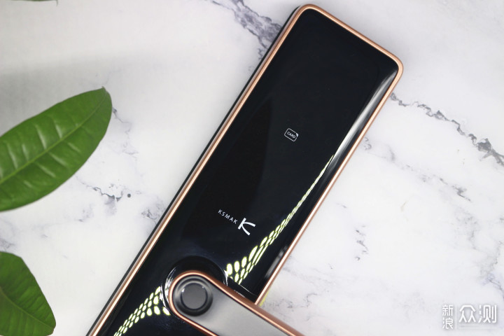 金指码指纹锁SK1共有两种配色选择:幻影黑、琉璃金,我们这边拿到的是琉璃金配色,锁体表面采用全新合金基底外包裹PET工艺,IML膜内成型一体成型,看上起是光滑玻璃表面透露着金属的轻奢质感,摸上去的手感也是清凉顺滑。