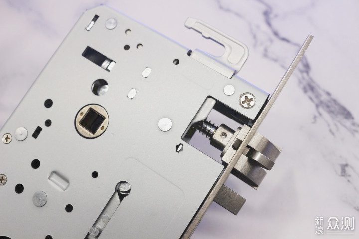 主锁舌与反锁锁舌均为不锈钢材质,看上去就给人一种安全感,同时金指码锁体的锁舌支持左右开门,用户可以根据自己是左开门还是右开门,自主调节锁舌的方向,实现方法也很简便,只需将图中的L拨上去,将锁舌按进去再锁体内旋转方向即可。