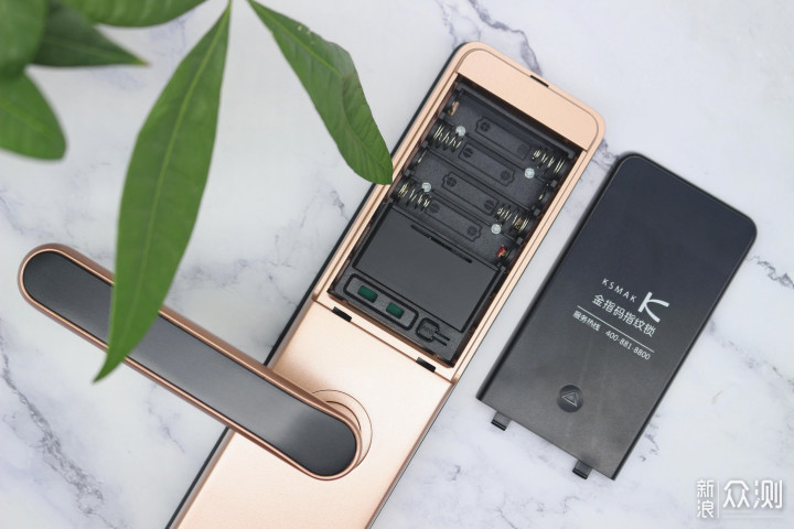 底部分别为备用机械钥匙口,Mic-USB应急充电电源接口,以及复位按键,其中备用机械钥匙开锁是6中开锁方式的最后的备选,也是最不智能的一种,作为指纹智能锁出现不可预知的故障时的最后一道防线,这里建议备用机械钥匙放在车里或其他地方,防止备用机械钥匙被锁家里。Mic-USB应急充电电源接口为了应付忘记更换电池的尴尬境地,可以通过充电宝为它应急充电,打开门锁。