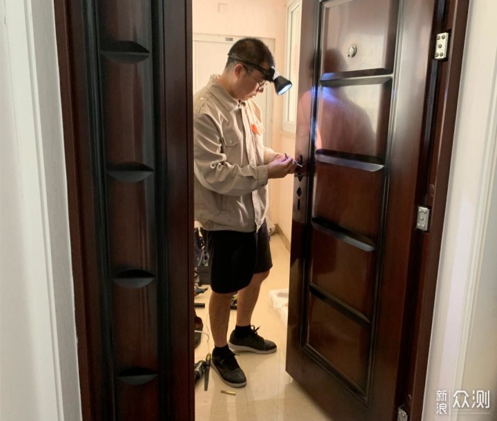 这里要夸一下金指码的客服服务,上午10点20分,我拨打的400客服电话进行预约安装,没想到11点30分,就接到了安装师傅的确认电话,中午一家人正在吃饭,安装师傅就已经到了,由于原有锁孔口径较小,师傅首先进行的扩孔操作,接下来安装师傅帮锁把从右开门调整为左开门方式。