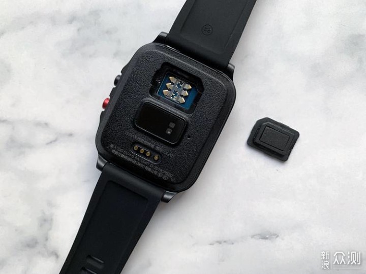 背部从上之下依次是SIM卡槽,测量模块以及四颗金属充电触点。